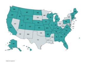 Alabama | Alaska | Arkansas | Colorado | Connecticut | Delaware | Georgia | Idaho | Indiana | Iowa | Kansas | Kentucky | Maine | Massachusetts | Michigan | Missouri | Montana | Nebraska | New Hampshire | North Carolina | North Dakota | Oregon | Pennsylvania | Rhode Island | South Carolina | Tennessee | Utah | Vermont | Virginia |Washington | Wisconsin | Wyoming